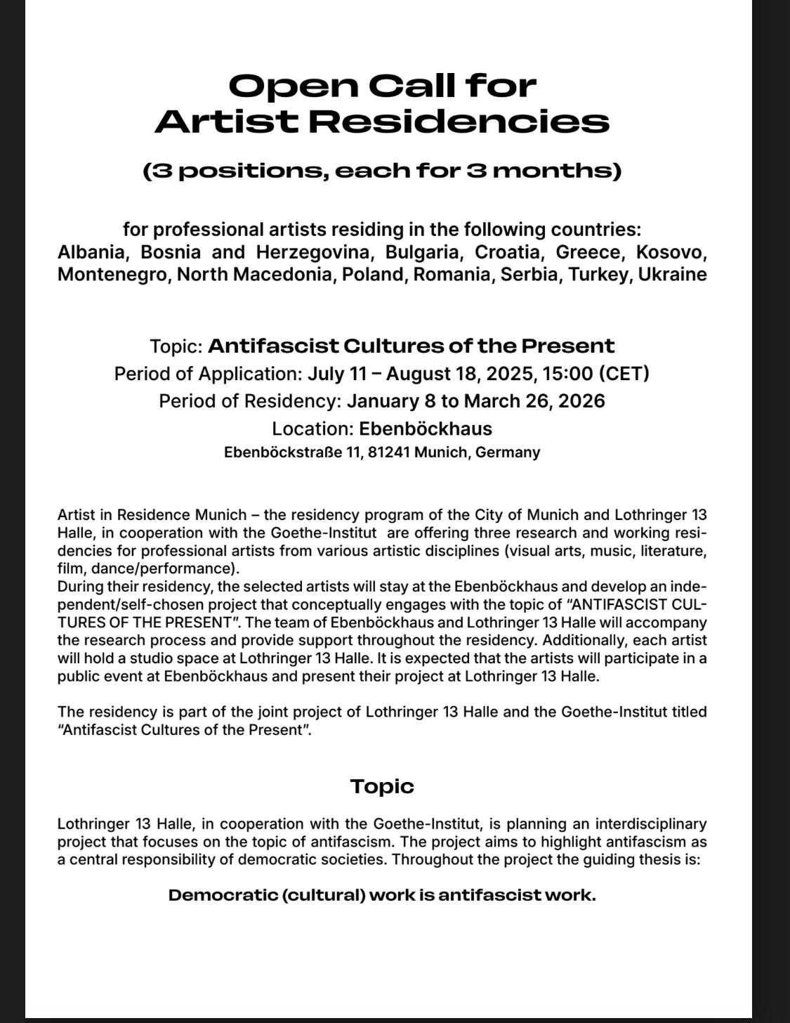 #lothringer13halle #goetheinstitut #antifascismnow #opencall #artistresidency #artistinresidencemun